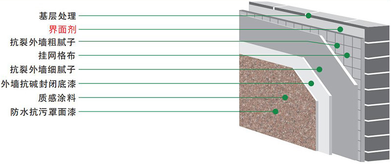 建議配套產(chǎn)品:界面劑一遍,抗堿底漆一遍,面漆兩遍(建議涂裝道數(shù)),專用罩光面漆一遍。