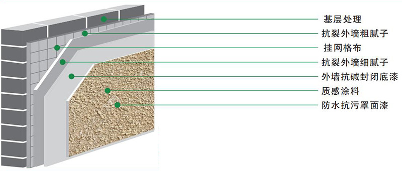 建議配套產(chǎn)品:多彩專用抗堿底漆一遍,多彩中涂一遍,多彩漆兩遍(建議涂裝道數(shù)),專用罩光面漆一遍。