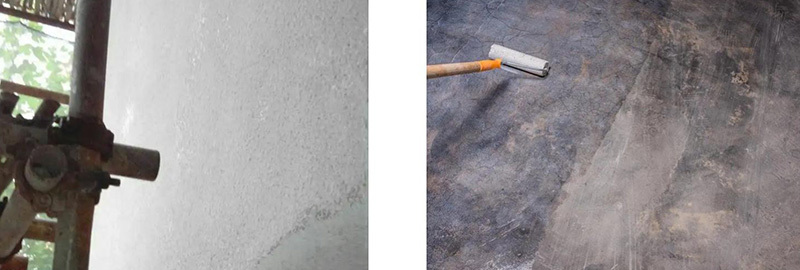 施工前先將基層上的污物,灰塵等附著物清除,基面要充分干燥后進行施工,基面含水率<10%;PH<10。
